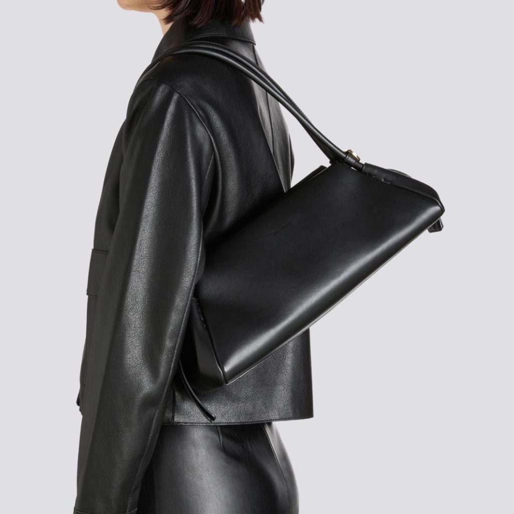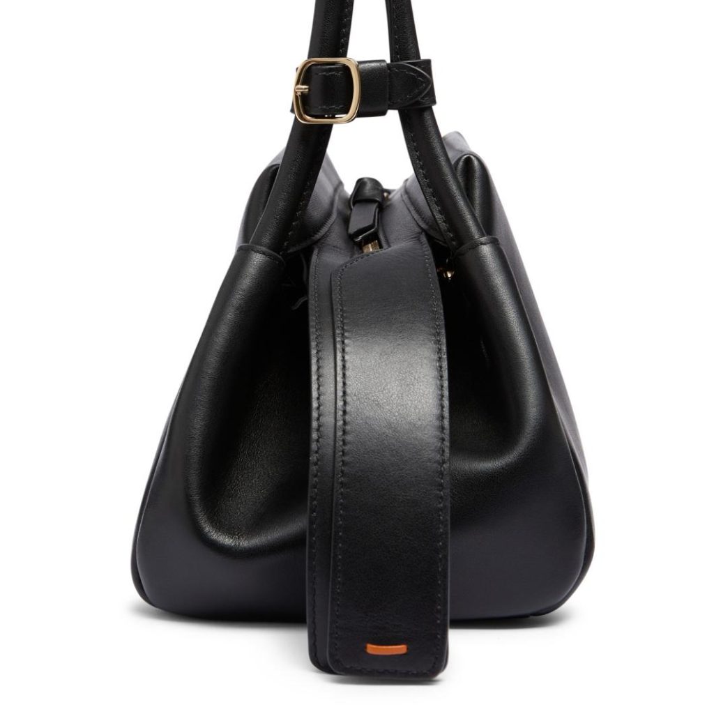 Clean geometric lines and astonishingly soft leather: the charm of Santoni’s latest bag lies in the powerful allure of contrast. Fusing classic with contemporary, this accessory is defined by a rigid trapeze silhouette, featuring tonal leather handles and a small metal buckle: an enduring symbol of the Maison’s DNA. A long zip closure ensures easy access to its spacious interior, equipped with various pockets to keep your belongings neat and organised.