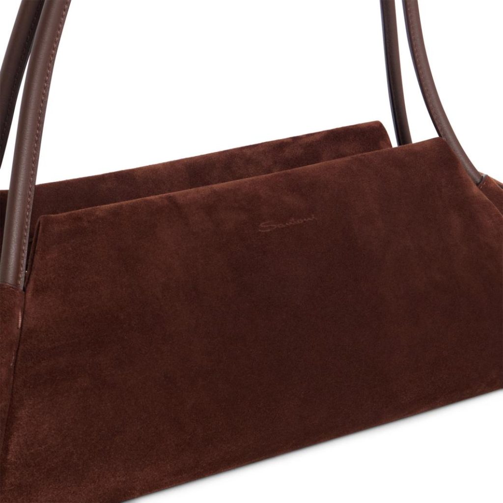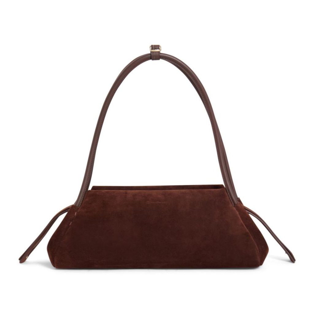 Severe geometric lines and astonishingly soft suede: the charm of Santoni’s latest bag lies in the powerful allure of contrast. Fusing classic with contemporary, this accessory is defined by a rigid trapeze silhouette, featuring tonal leather handles and a small metal buckle: an enduring symbol of the Maison’s DNA. A long zip closure ensures easy access to its spacious interior, equipped with various pockets to keep your belongings neat and organised.