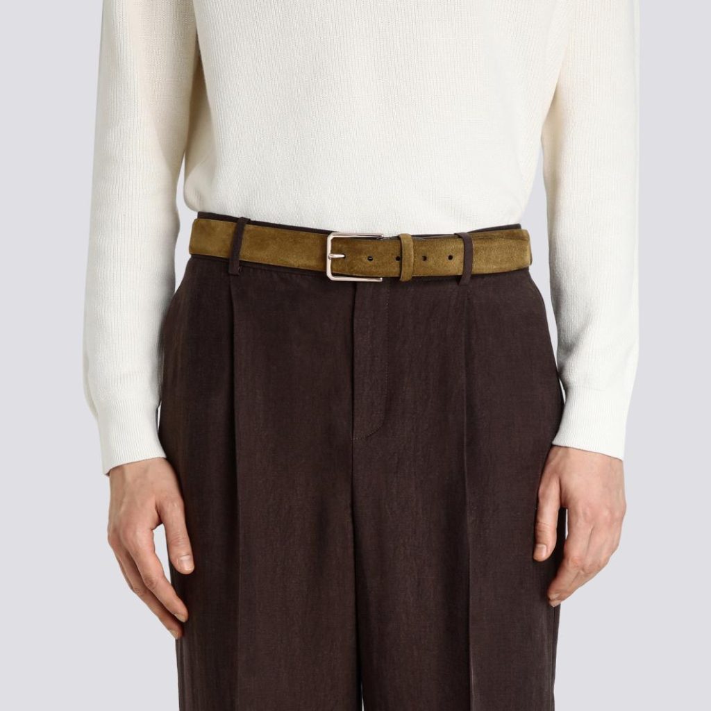 Crafted by hand from the finest suede, this belt is an elegant fusion of Santoni style codes. Perfect with jeans or smart trousers to suit the occasion, it fastens with a square metal buckle.