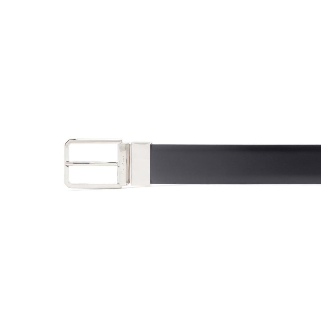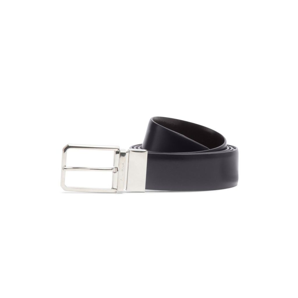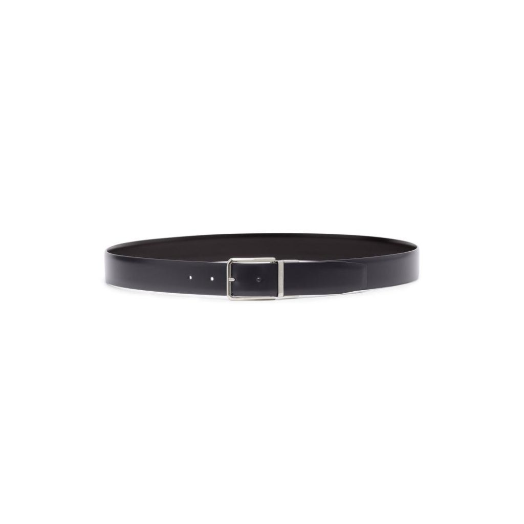 Santoni reinterprets the classic men’s belt with a reversible design that combines two contrasting colors for maximum versatility. Crafted from fine leather, it fastens with a sleek square metal buckle.