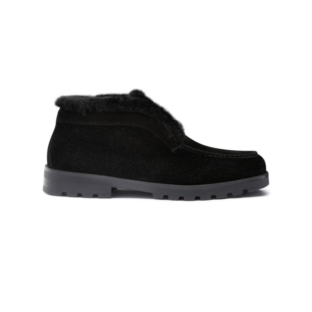 A leisurewear icon, given a new lease of life with the artisanal luxury of Santoni. This women’s desert boot is crafted from elegantly textured suede, lined and edged with fur to ensure an opulent feel during the colder months. Its lightweight construction is elevated with a chunky rubber sole for a modern touch.