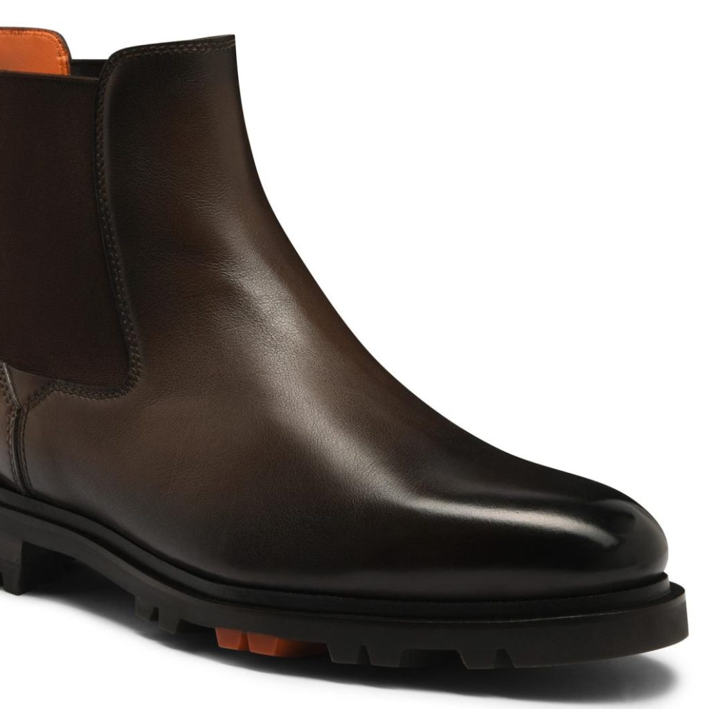 Effortless style for life in the fast lane. This Chelsea boot is crafted from luxurious leather, treated with our iconic “velatura” coloring technique for a unique gradated effect. Elasticated side inserts and a rear pull tab make it quick and easy to slip on and off, whilst a double-buckle-inspired detail on the tread in signature Santoni orange marks every stride with unmistakable charm. Designed with a Goodyear welt construction for an exceptionally soft, flexible feel.
