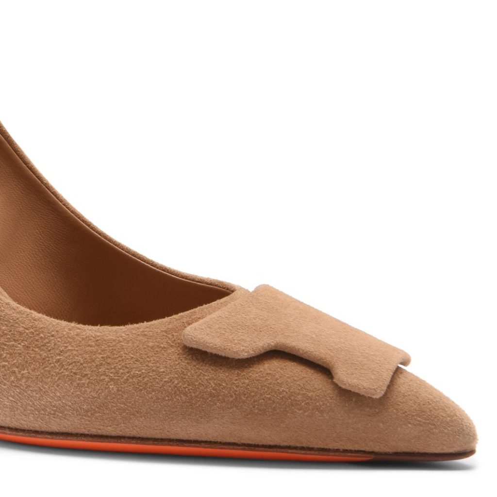 Meet the Sibille pump: a symbol of Santoni style. This luxurious suede iteration is embellished with a refined detail inspired by our signature double-buckle shoe. Whilst pairing beautifully with a smart suit or dress, this take on the Santoni icon adds a chic touch to everyday looks too. Defined by a sophisticated silhouette with a flattering tapered toe and leg-lengthening stiletto heel.