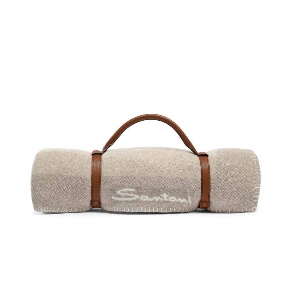 The epitome of indoor luxury. This cashmere blanket is elevated by Santoni with laid-back tones and artisanal details that pay homage to the excellence of Marche craftsmanship and the spectacular beauty of its landscapes. Its unique jacquard design depicts the iconic cliffs of Portonovo, embellished with a refined leather logo patch.