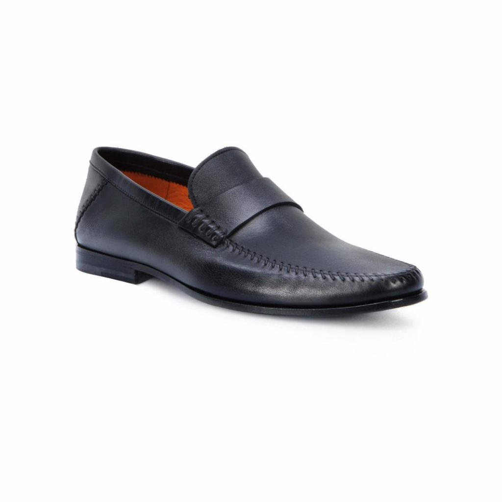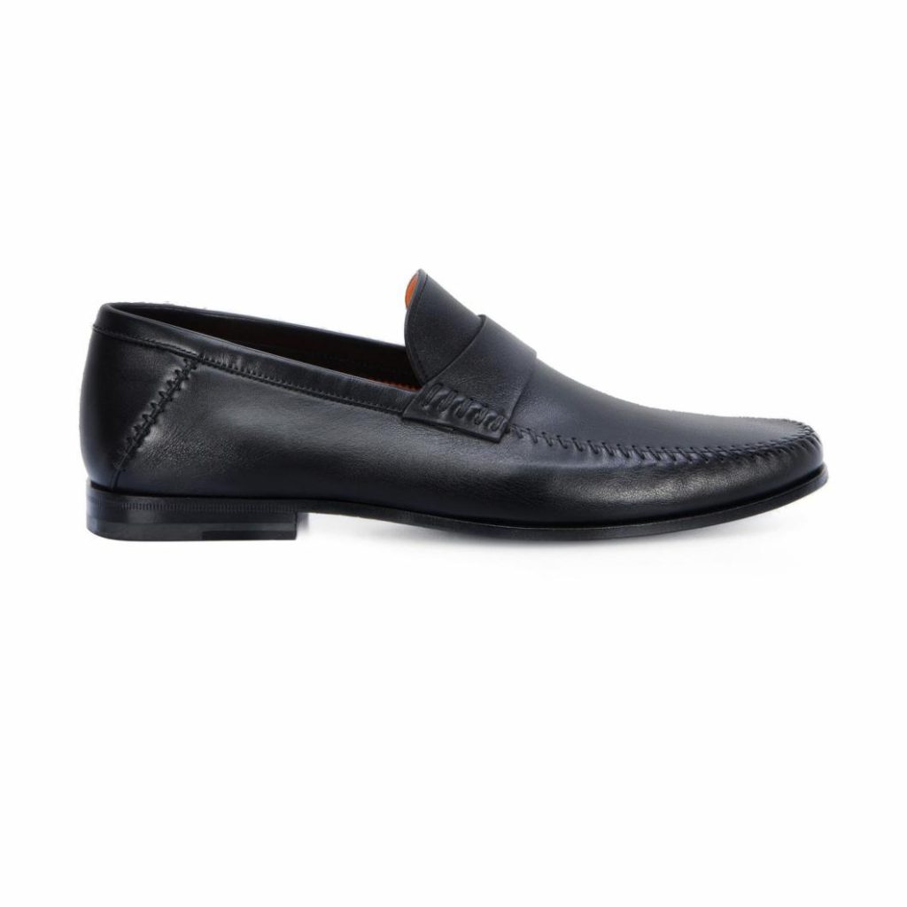 Santoni Loafers | Men Black Leather Penny Loafer