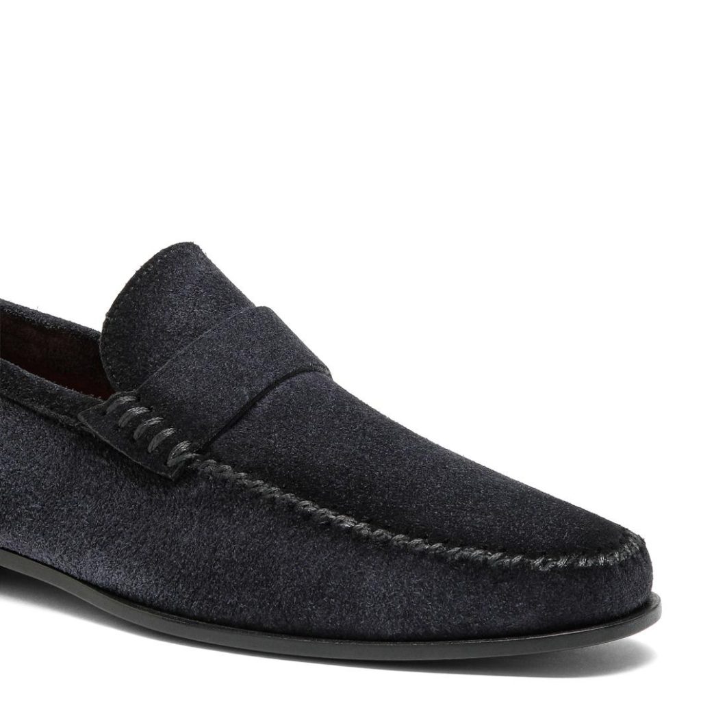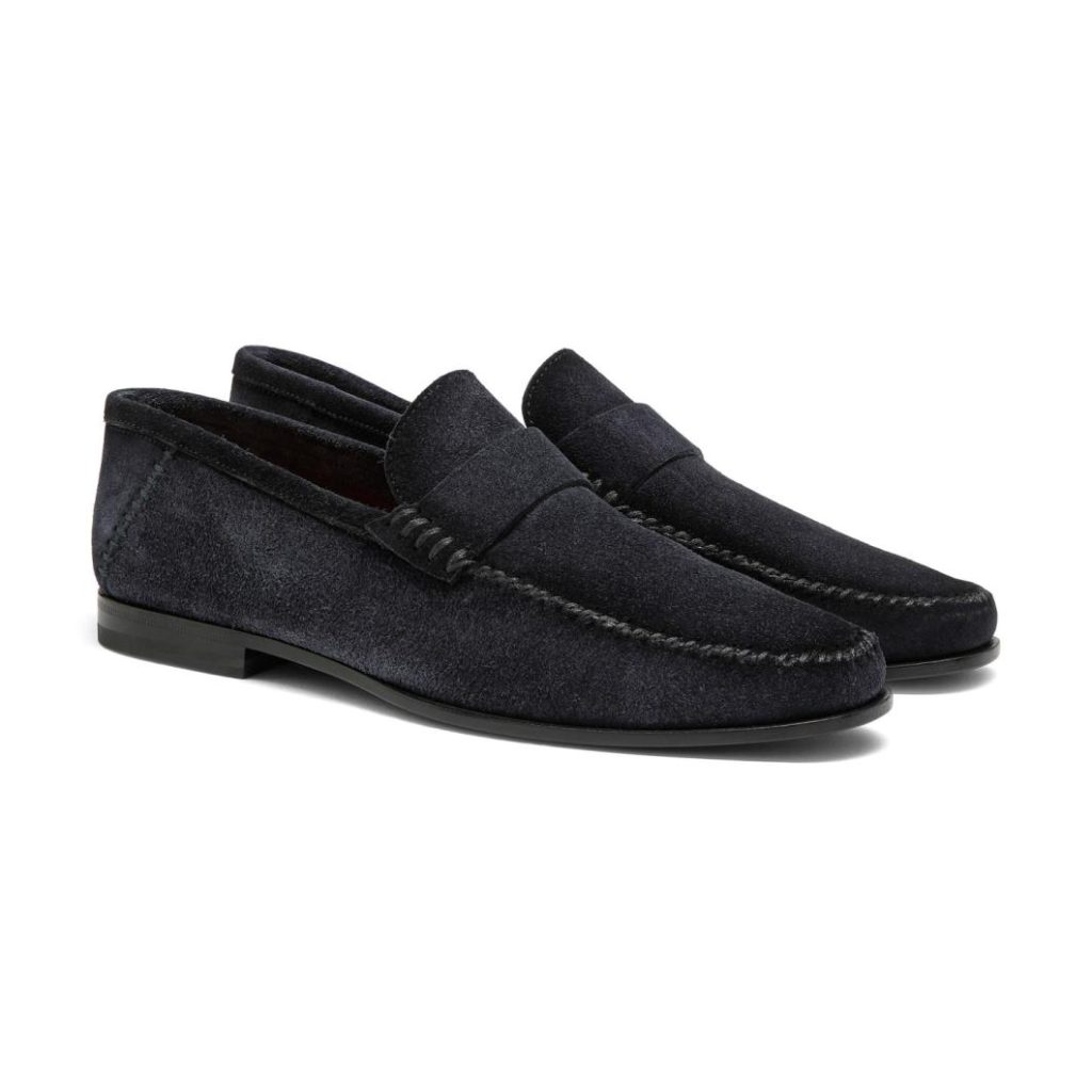 Santoni Loafers | Men Blue Suede Penny Loafer