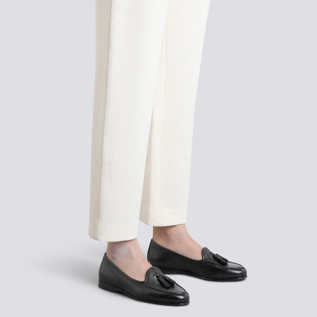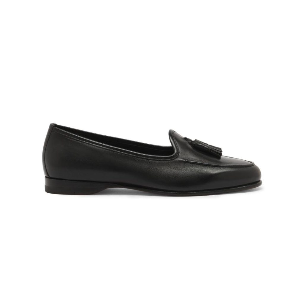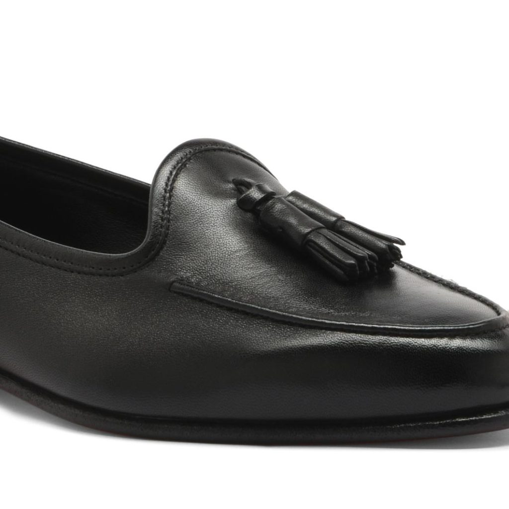 The women’s Andrea loafer reinterprets an archival classic with refined allure, flaunting a sleek, low-cut silhouette that shows off the ankle. This iteration is crafted from nappa leather with our signature “velatura” gradated finish, and is embellished with delicate tassels on the toe. Designed with a special Goodyear welt construction for an ultra-soft, flexible feel.