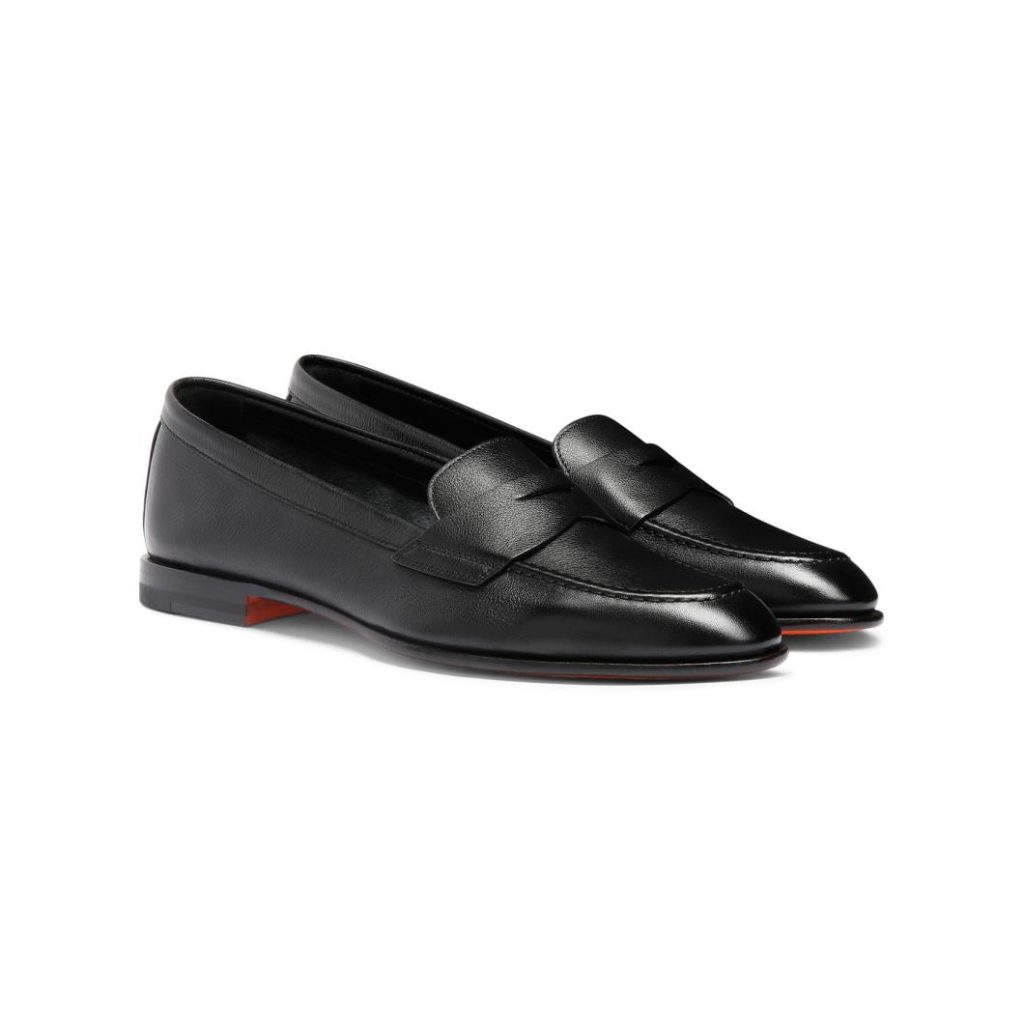 This women’s loafer cements the refined lines of the iconic penny loafer whilst rewriting them with Santoni’s artisanal quality, crafted from luxurious leather and hand-finished with raised apron stitching. Flaunting a sophisticated silhouette with a tapered toe, this shoe is an essential for business outfits and chic city looks.