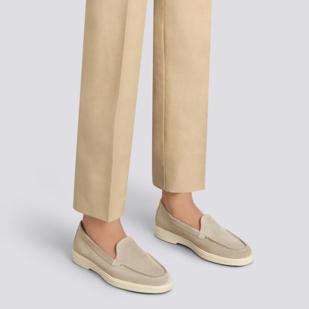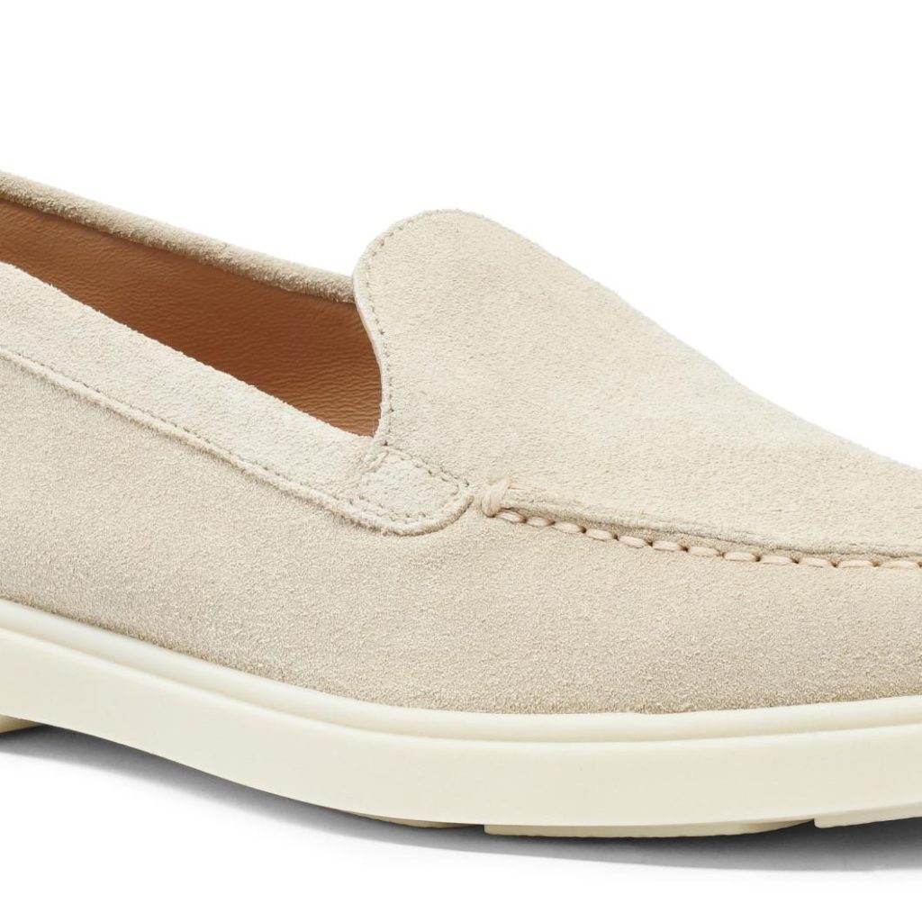A timeless style to elevate your off-duty everyday edit. Crafted from nubuck leather, this women’s loafer features raised apron stitching and a Santoni logo moulded into the tread. Its elegant silhouette is fitted with a rubber sole that moulds to your every stride, promising optimal comfort from morning to night.