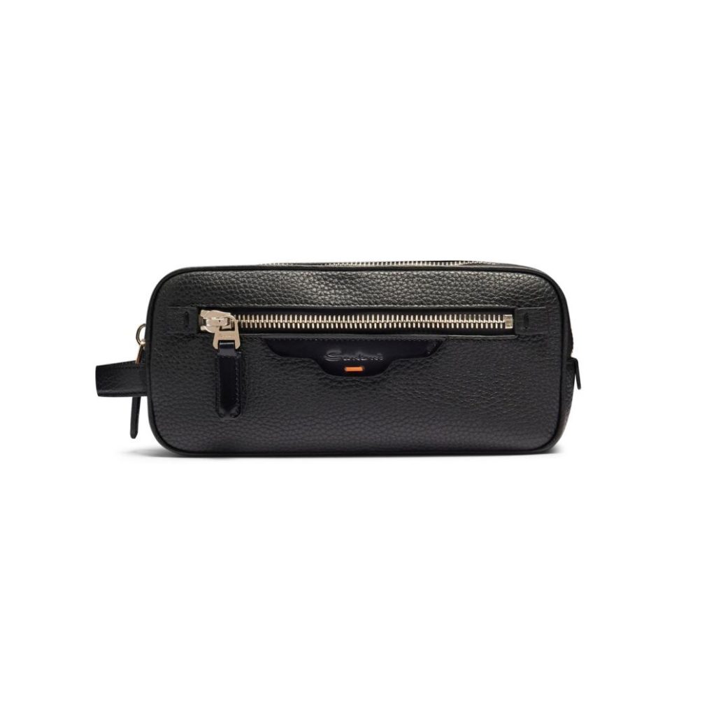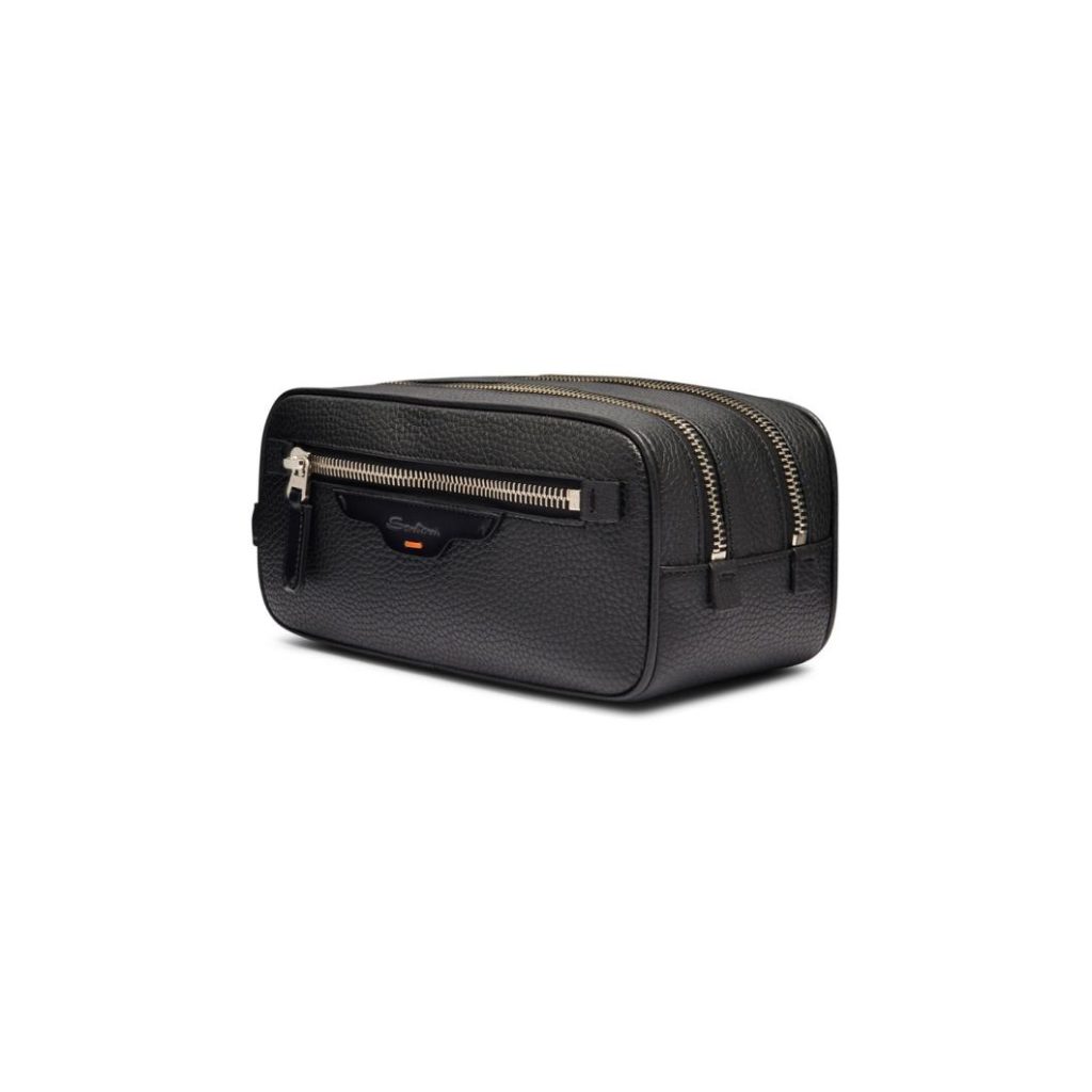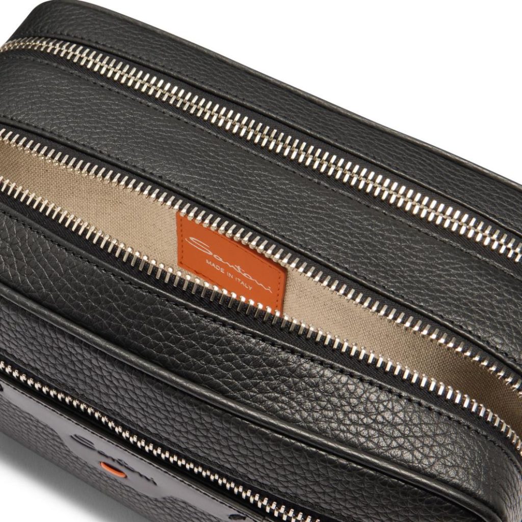 Santoni Men’s Black Tumbled Leather Dopp Kit