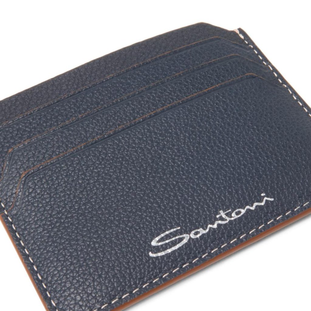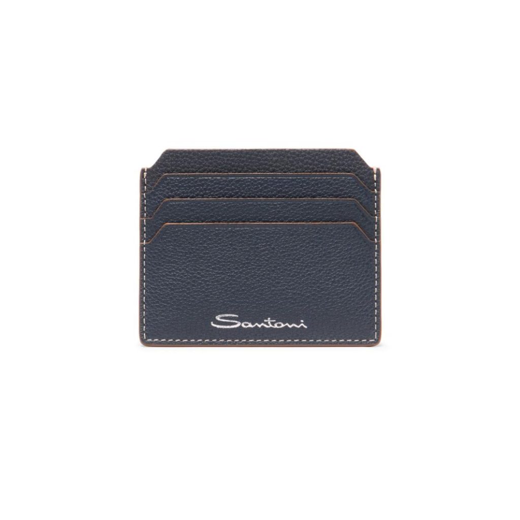 Santoni Men’s Blue Leather Credit Card Holder | Premium Italian Craftsmanship