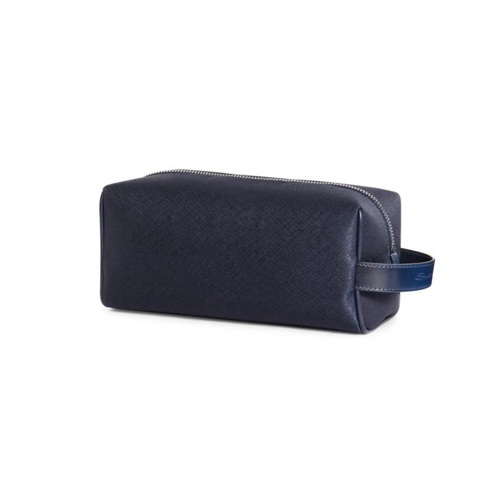 Expertly crafted from premium leather and jacquard-woven nylon, this sophisticated pouch features a water-resistant finish with the distinctive texture of traditional boarded leather, embodying Santoni’s modern luxury aesthetic.