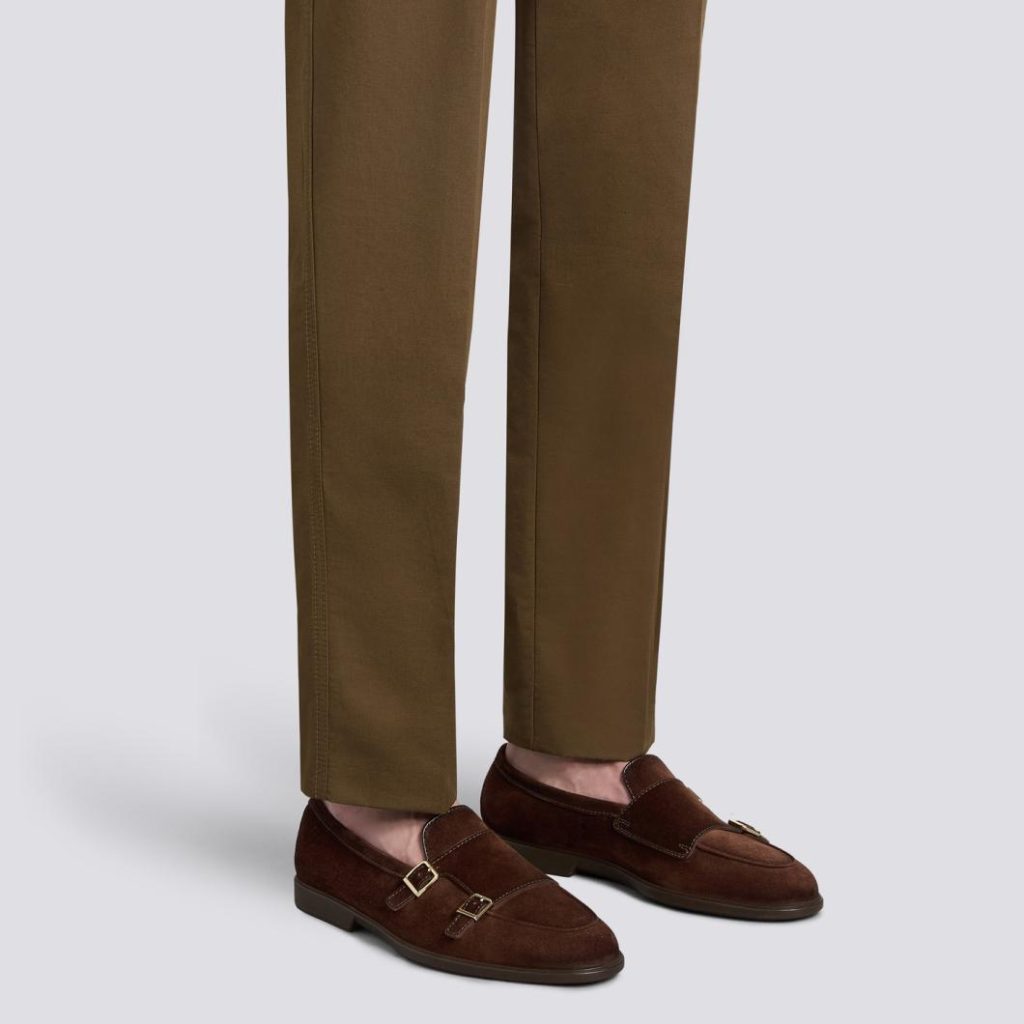 Discover contemporary styling with distinctive details that honor Santoni’s heritage of exceptional craftsmanship. These double-buckle loafers reinvent a classic with a relaxed sophistication, featuring premium reverse suede with rich texture and incredible softness. The flexible rubber sole delivers all-day comfort, accented with our signature Arancio Santoni orange double-buckle detail on the tread.