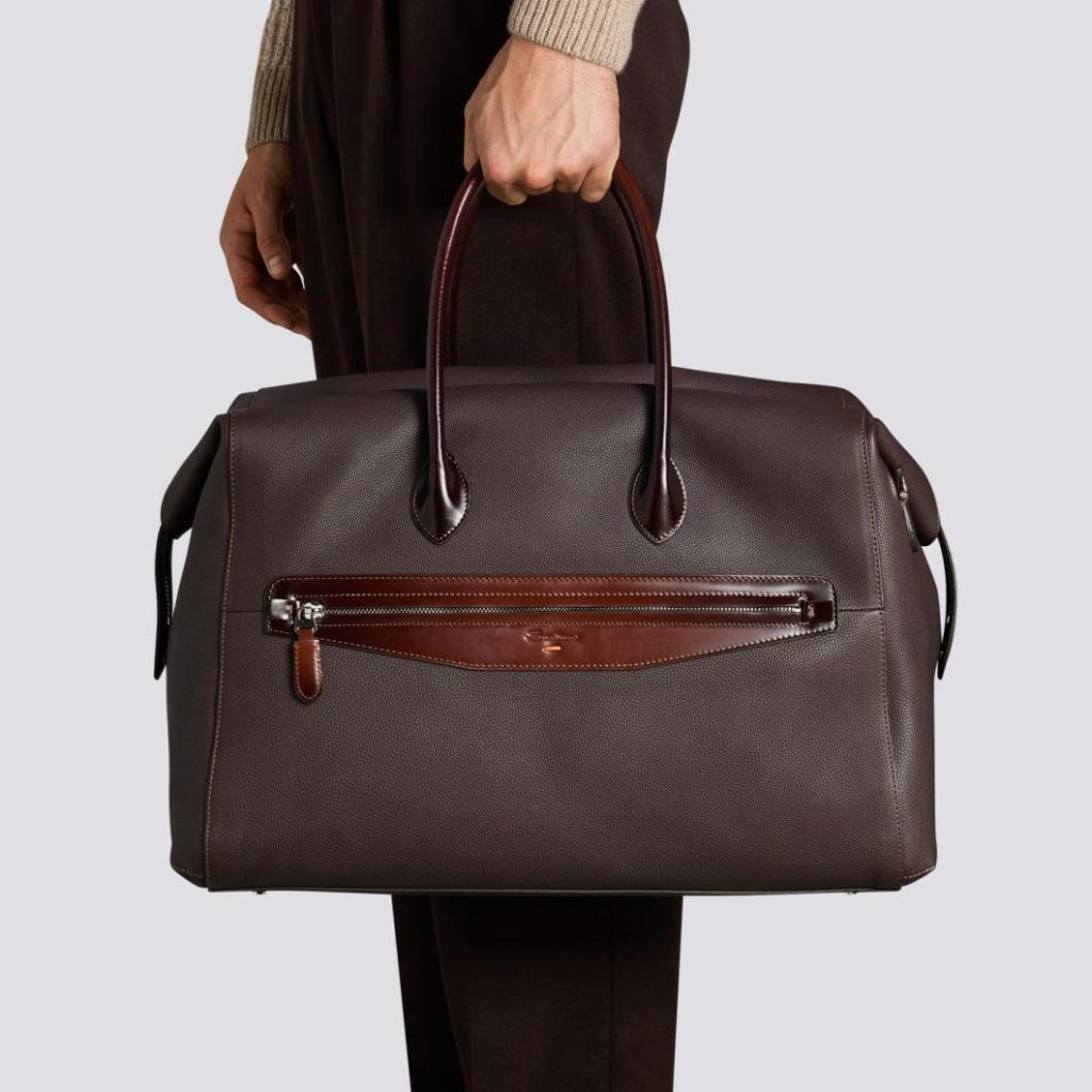 Santoni Men’s Dark Brown Tumbled Leather Weekender Bag