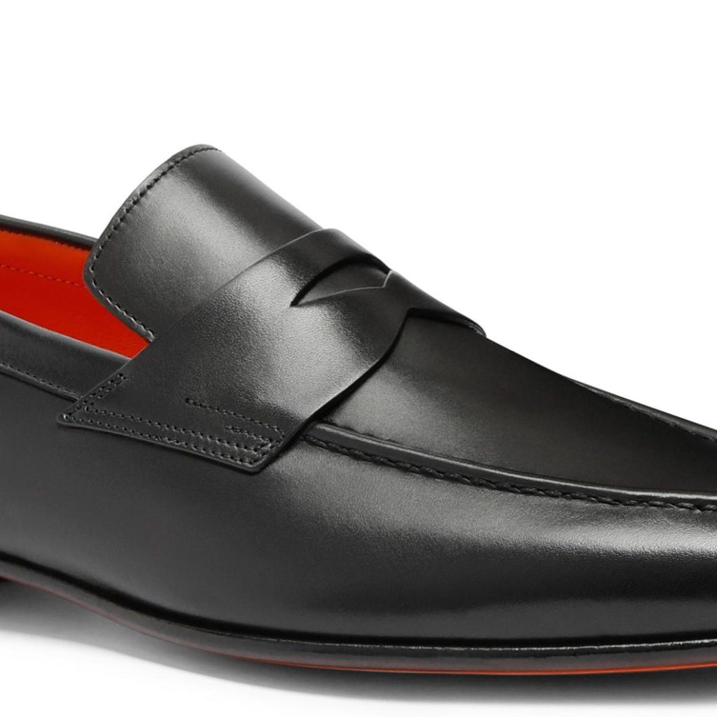 Experience the perfect blend of Italian craftsmanship and contemporary style with these exceptional Santoni loafers. Meticulously crafted from hand-polished leather using time-honored techniques, these premium shoes feature distinctive raised apron stitching and an elegant saddle strap design. The vibrant orange sole and matching lining create a signature Santoni look that makes a sophisticated statement.