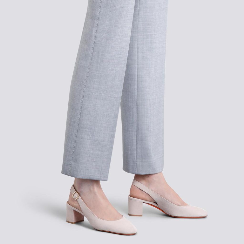 Santoni transforms a timeless classic into a stand-out icon with luxurious materials and artisanal savoir-faire. Embracing the timeless allure of the classic dolly shoe, this suede slingback is elevated with a delicate adjustable strap. Harmoniously sculpted with a rounded toe and mid-height heel for uncompromising comfort and style from morning to night.