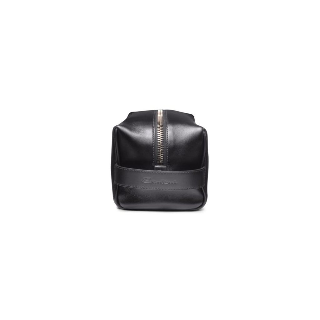 Compact proportions and iconic workmanship define this Santoni pouch, enriching moments of beauty and travel with refined elegance. Crafted from leather, it showcases our signature “velatura” finish: an artisanal treatment that creates an elegant gradated effect. Complete with a handle on one side, adding to the design’s functional allure.