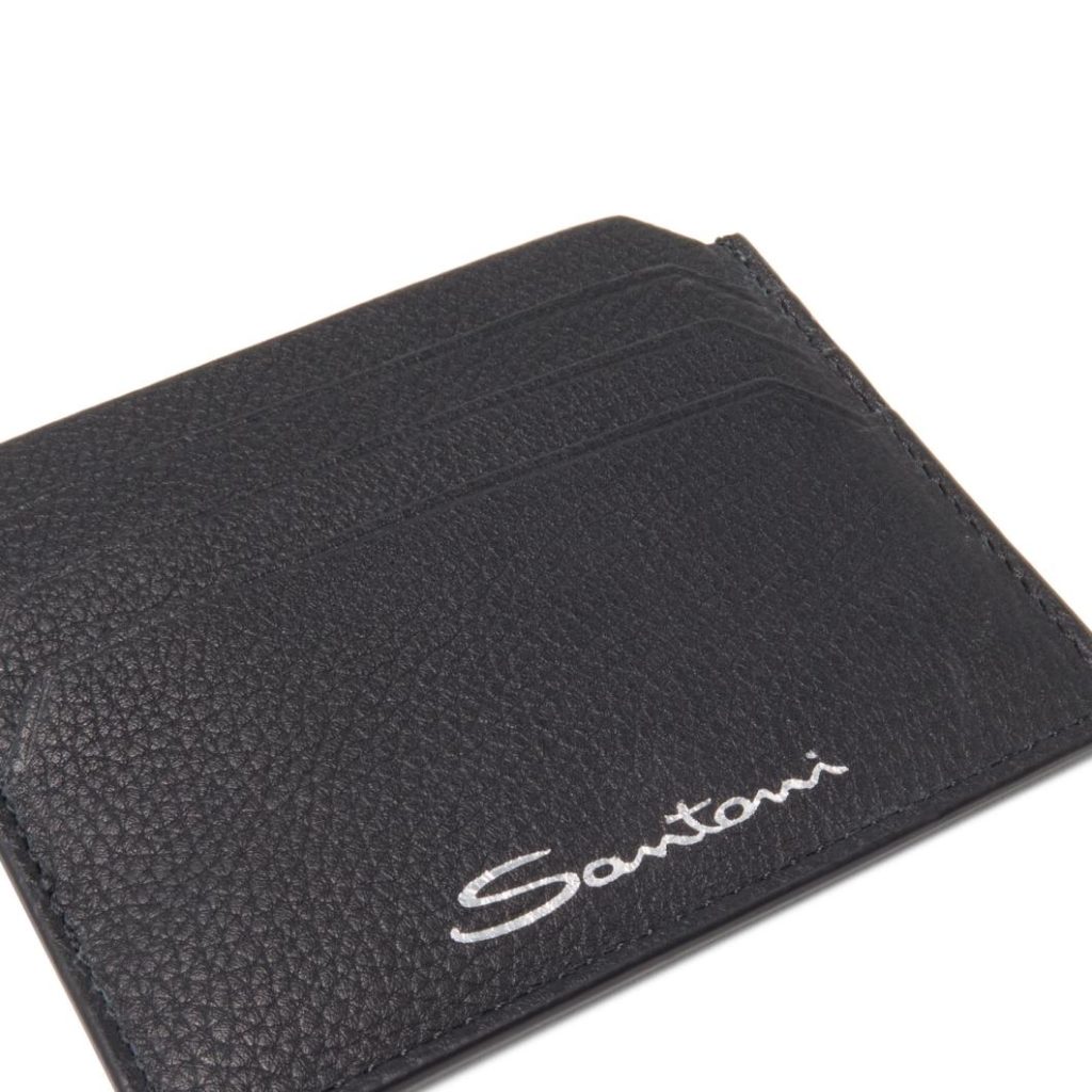 Fine tumbled leather and a sleek design for everyday functionality. This women’s cardholder features a central pocket and three bevelled-edge slots on each side. Embellished with an embossed Santoni logo on the front for a signature touch.