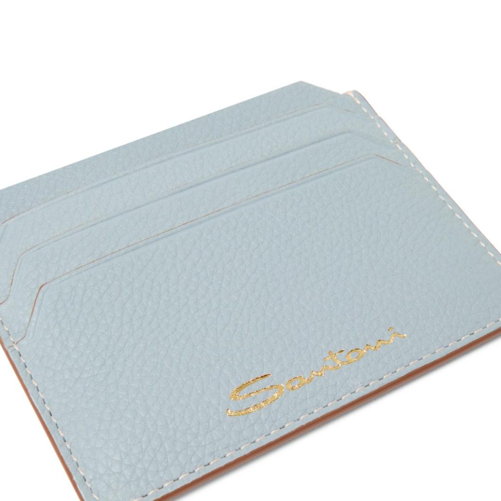 Santoni Small Leather Goods | Women Light Blue Tumbled Leather Credit Card Holder