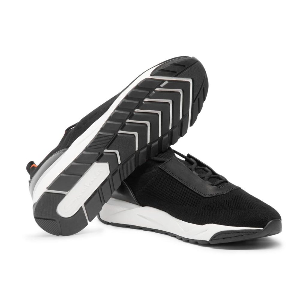 Dynamic spirit, contemporary attitude and heritage details expressing Santoni’s DNA. This low-top sock sneaker is crafted from stretch fabric with nubuck accents for superior resistance, finished with contrast stitches in celebration of our signature orange tone. Its comfy running-inspired silhouette is enhanced with a chunky rubber sole that supports the movement of the foot, and a rear pull tab that makes it easy to slip on and off.