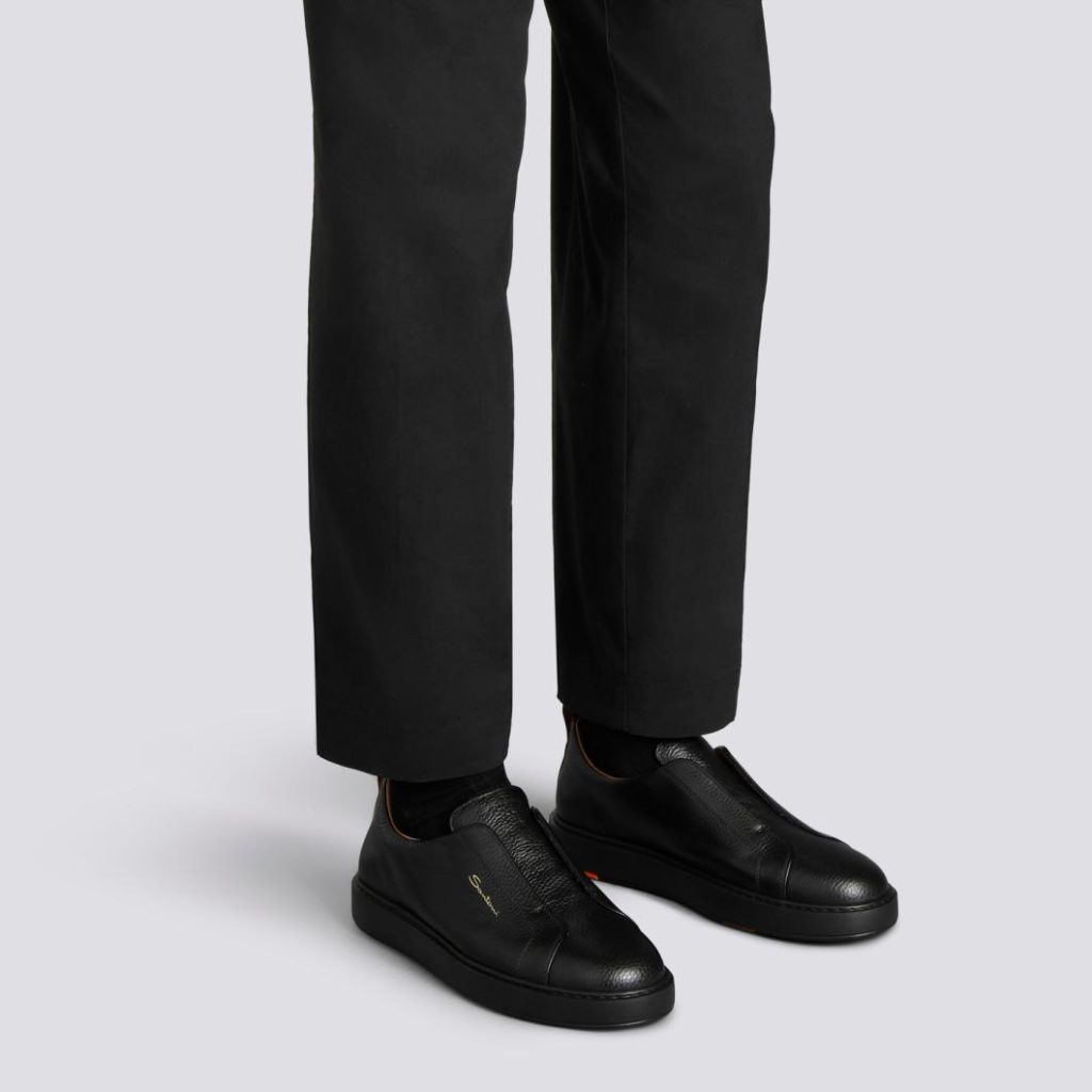 The lightweight feel of a slip-on design meets our unparalleled artisanal expertise. Crafted from tumbled leather, this refined men’s sneaker is brimming with references to Santoni’s rich heritage, flaunting a gradated leather pull tab on the heel and a decorative detail on the tread inspired by our iconic double-buckle shoe. A flexible rubber cupsole ensures maximum comfort with every stride from morning to night.