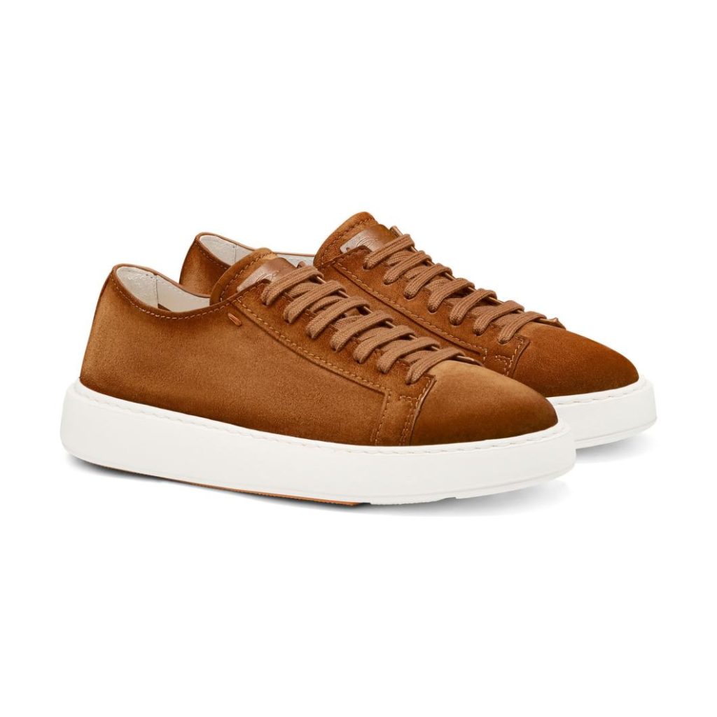 Crafted from suede and enriched with our hallmark artisanal “velatura” color-grading technique, this men’s sneaker combines exquisite detail with modern practicality. Bringing refined elegance to casual ensembles, it features a bright orange detail on the tread to reveal a radiant flash of classic Arancio Santoni with every stride.