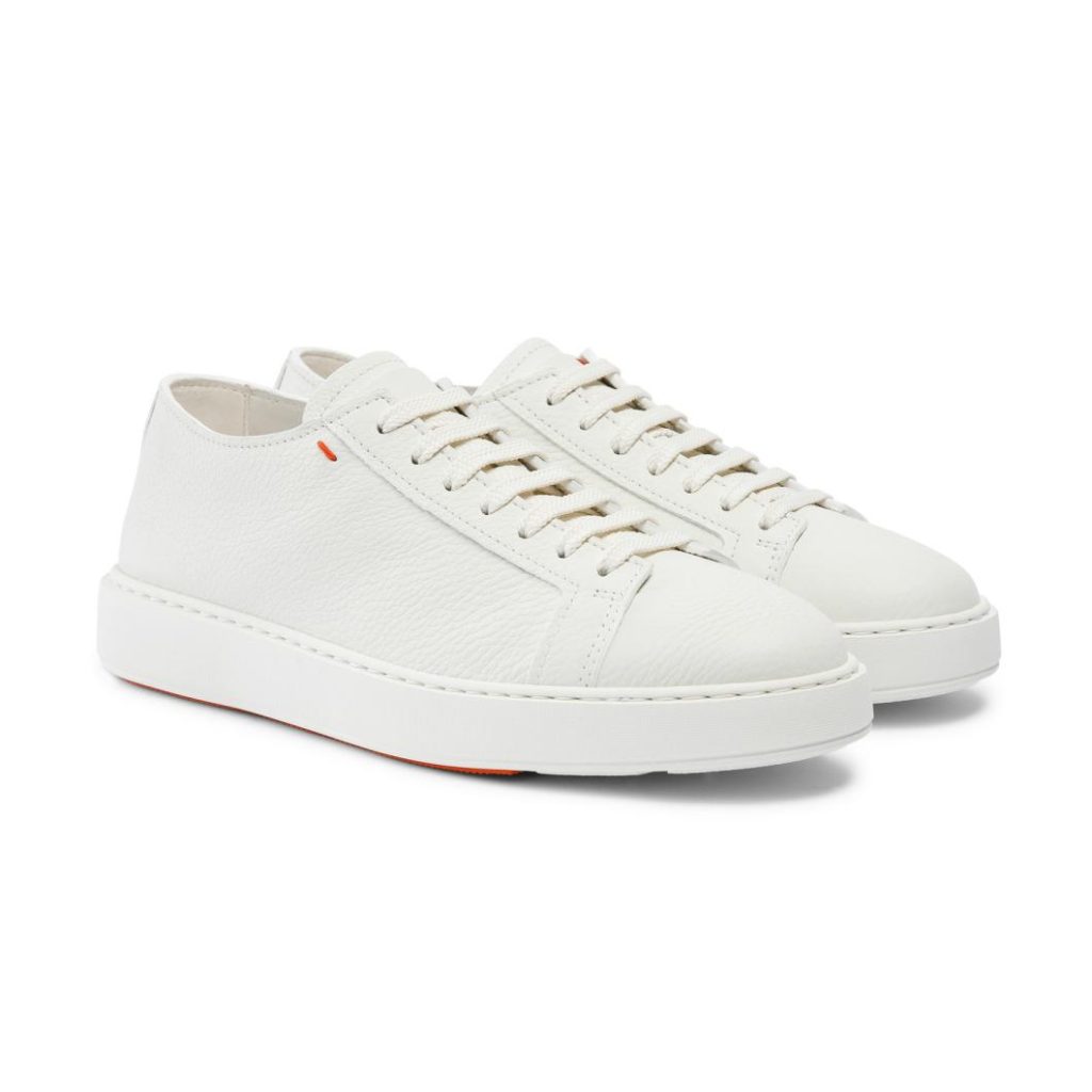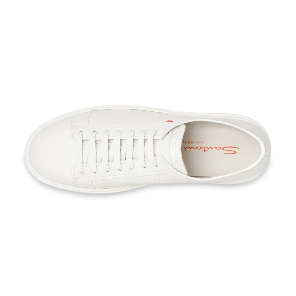Style meets functionality, whilst sporty influences meet luxurious attitude. This Santoni men’s sneaker is crafted from luxurious tumbled leather, embellished with a small coloured stitch in celebration of our signature orange tone. Its wide-fit silhouette with round toe and flexible cupsole ensure maximum comfort from morning to night.