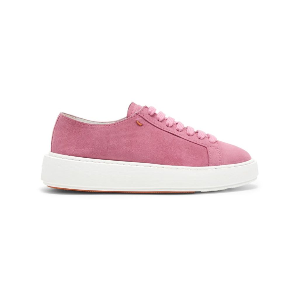 Crafted from soft, supple suede, this women’s sneaker combines artisanal finesse with modern practicality. Bringing a sophisticated touch to casual outfits, it features a leather logo patch on the tongue and a chunky rubber platform sole that elongates the leg. Complete with a bold detail on the tread in classic Arancio Santoni, recalling the lines of our iconic double buckle.
