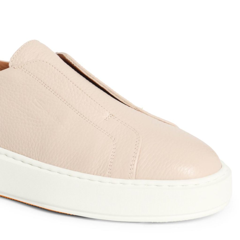 In the exclusive world of Santoni sneakers, this women’s slip-on style represents the perfect blend of sporty elegance and exquisite craftsmanship. Crafted from tumbled leather, it features a leather pull tab and heel counter with our distinctive gradated finish, carrying forward the legacy of Santoni’s color treatments. A flexible rubber cupsole completes the design, promising impeccable comfort and freedom from morning to night.