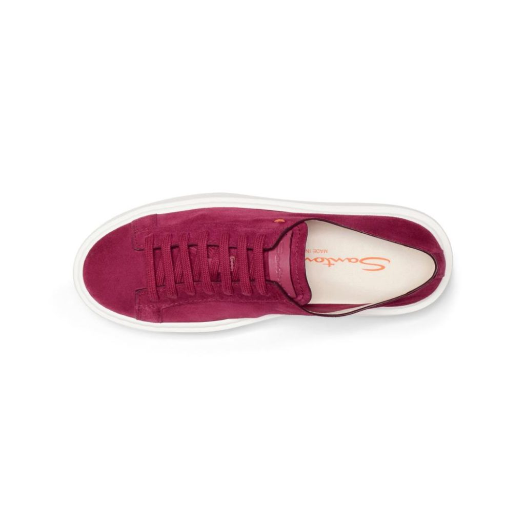 Crafted from soft, supple suede, this women’s sneaker combines artisanal finesse with modern practicality. Bringing a sophisticated touch to casual outfits, it features a leather logo patch on the tongue and a chunky rubber platform sole that elongates the leg. Complete with a bold detail on the tread in classic Arancio Santoni, recalling the lines of our iconic double buckle.