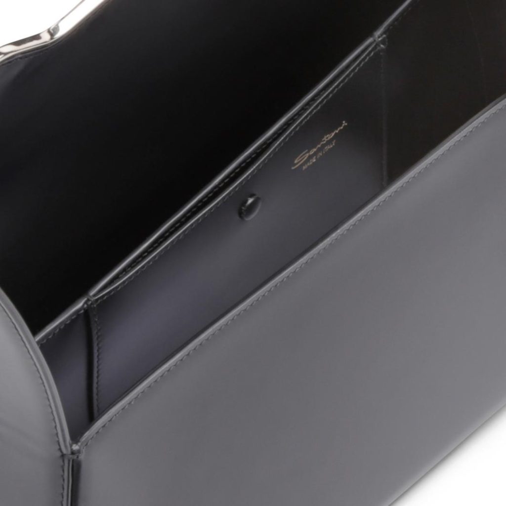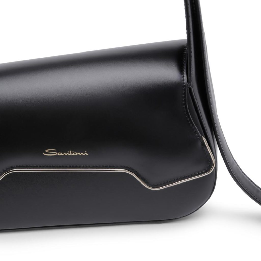 This Santoni bag embodies bold sophistication with a contemporary edge. Its distinctive asymmetric silhouette creates striking visual appeal, featuring a geometric flap closure inspired by the brand’s iconic double-buckle shoe design. Expertly crafted from premium leather, it secures with a snap-button closure and includes an adjustable shoulder strap for versatile wearing options.