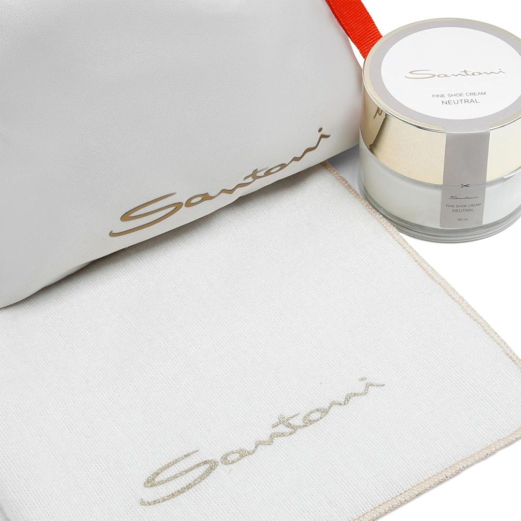 An essential for all shoe lovers, this shoe care kit makes a practical travel companion and a thoughtful gift idea. Celebrating Santoni’s signature orange tone, the nylon pouch contains: a soft polishing cloth, 50ml neutral polishing cream.