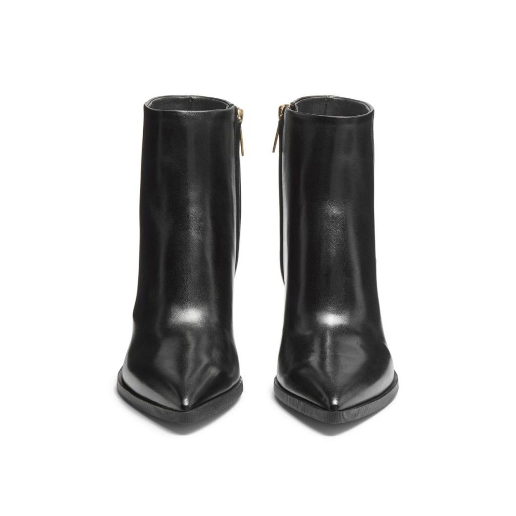 Elevate your wardrobe with this timeless women’s ankle boot, masterfully crafted from premium leather with exceptional attention to detail. This sophisticated design creates a flattering silhouette that beautifully elongates your legs, while the stable mid-height heel provides confident comfort with every step. The convenient inner side zip ensures easy wear, complemented by an elegant decorative strap at the back that showcases Santoni’s signature aesthetic.